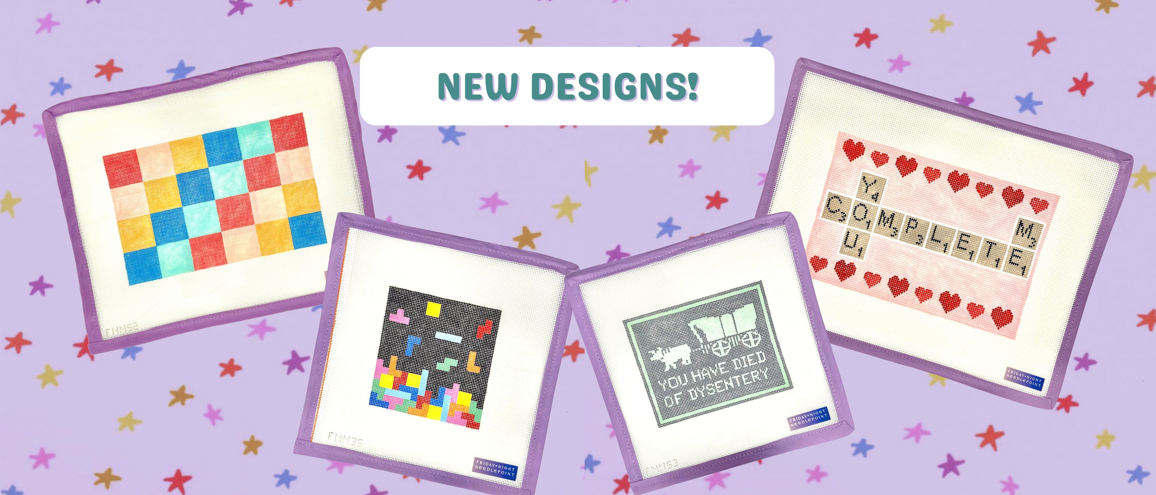 I started Friday Night Needlepoint as a way to showcase nerdy designs that were not prevalent in the needlepoint market - especially DnD and MtG designs! That snowballed into finding my creative spark with other board game and whimsical ideas that has now become a collection. I hope these canvases spark joy and laughter for years to come!
