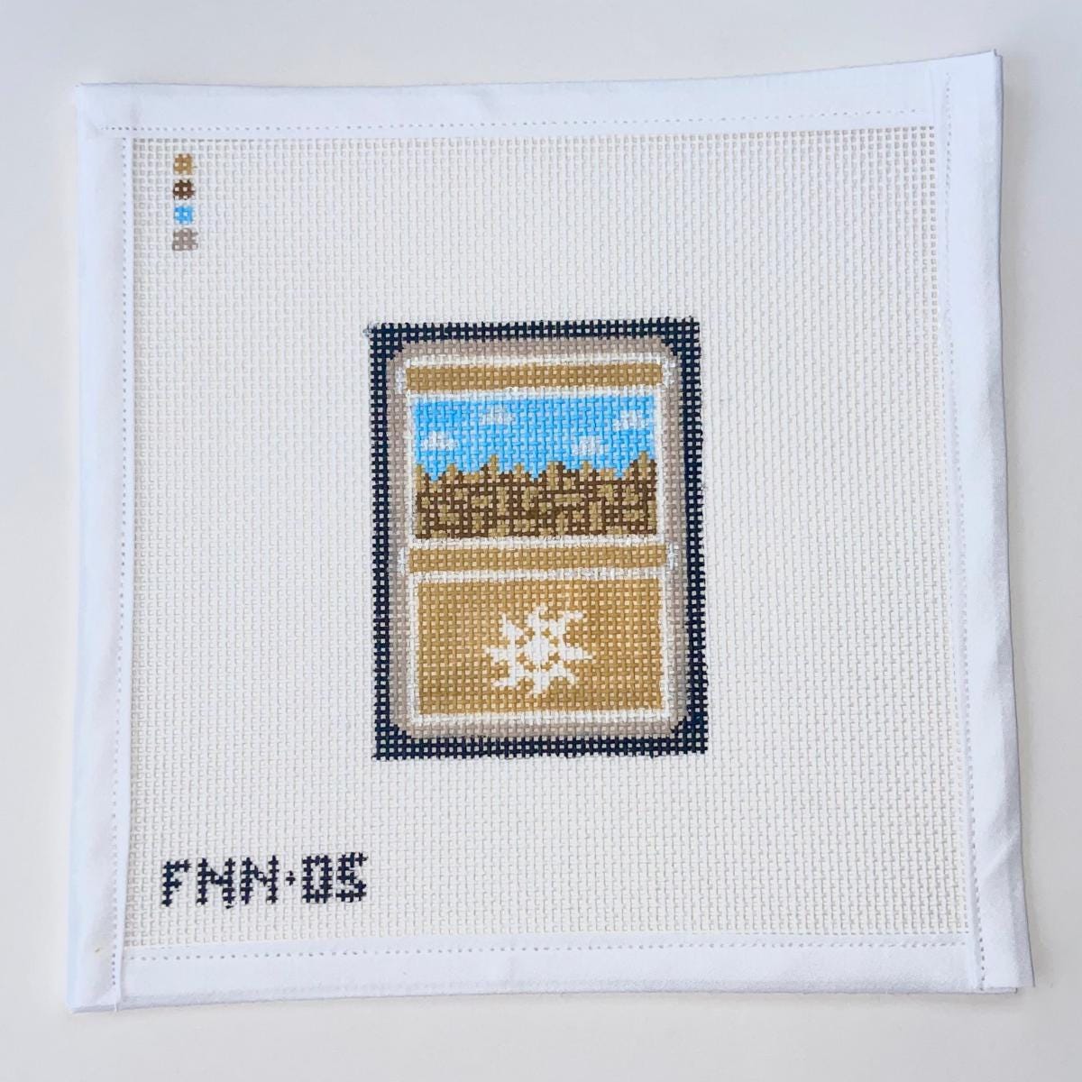 Hand painted on 13 mesh canvas. Comes with bias tape around the edges.